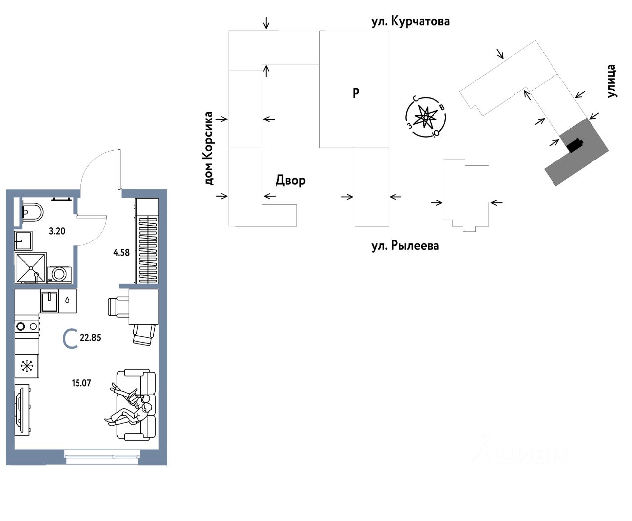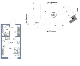 Продается 1комнатная квартира на 6 этаже от застройщика Страна Девелопмент. Площадь квартиры 22,85 кв. м.