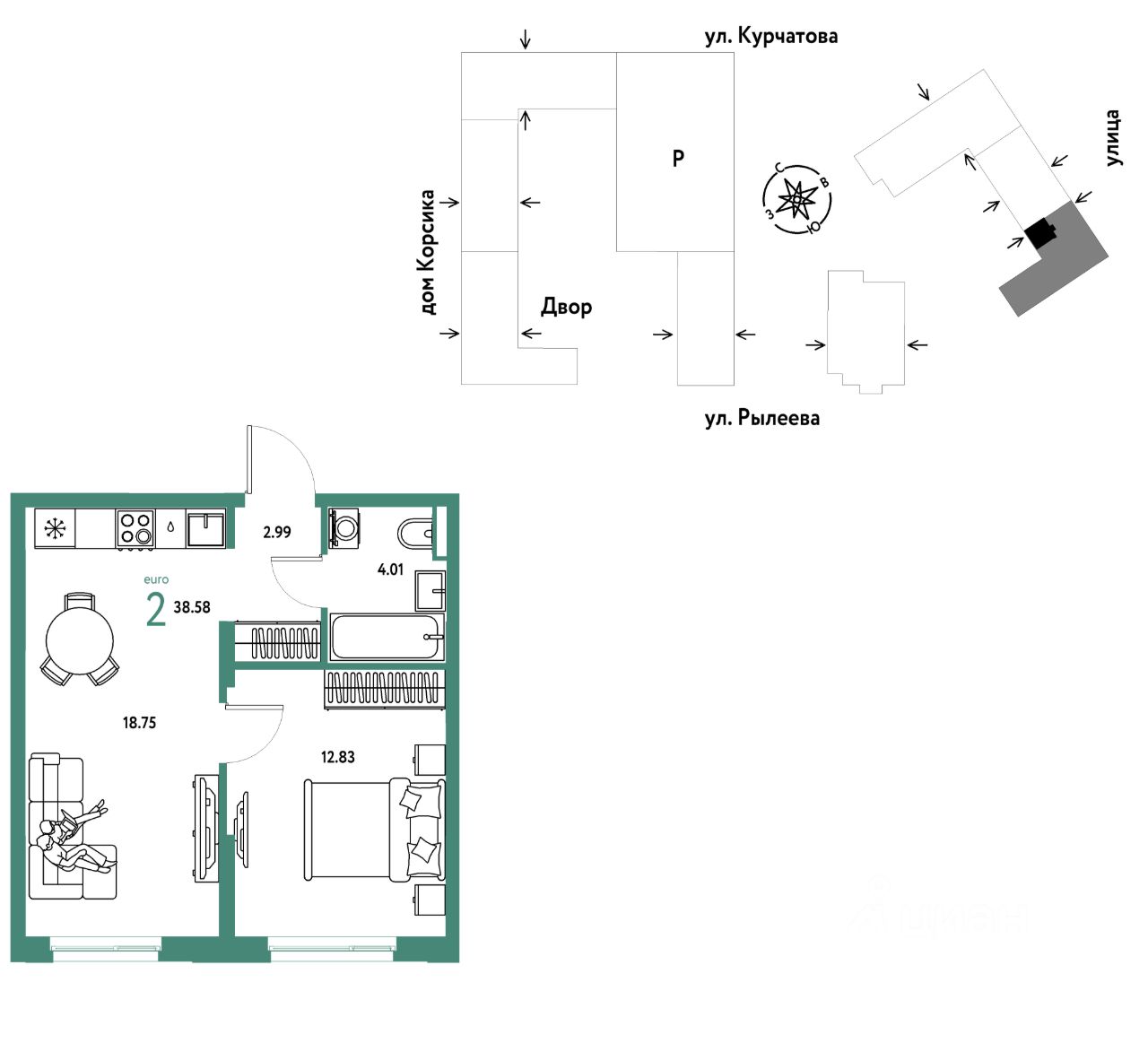 Продается 2комнатная квартира на 11 этаже от застройщика Страна Девелопмент. Площадь квартиры 38,58 кв. м.