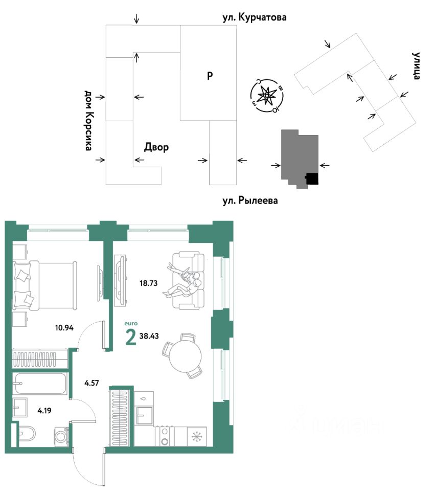 Продается 2комнатная квартира на 2 этаже от застройщика Страна Девелопмент. Площадь квартиры 38,23 кв. м.