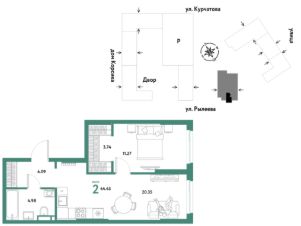 Продается 2комнатная квартира на 3 этаже от застройщика Страна Девелопмент. Площадь квартиры 44,16 кв. м.
