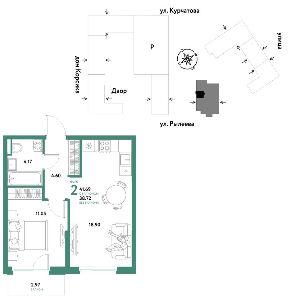 Продается 2комнатная квартира на 8 этаже от застройщика Страна Девелопмент. Площадь квартиры 41,49 кв. м.