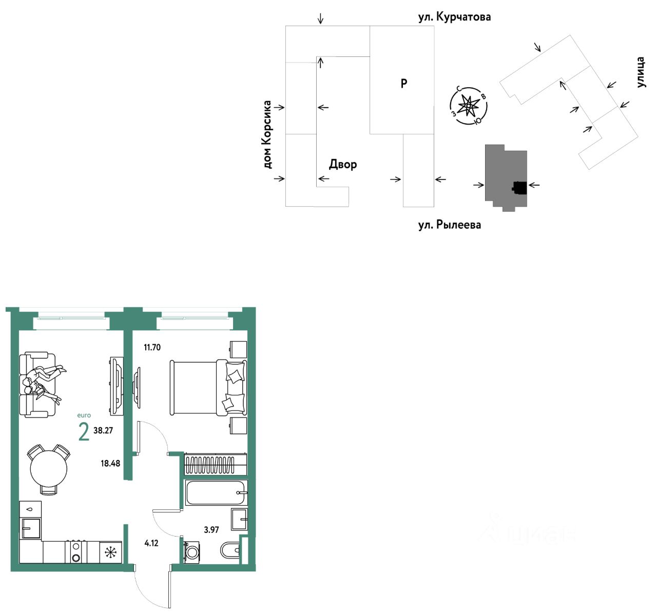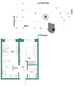 Продается 2комнатная квартира на 9 этаже от застройщика Страна Девелопмент. Площадь квартиры 38,27 кв. м.