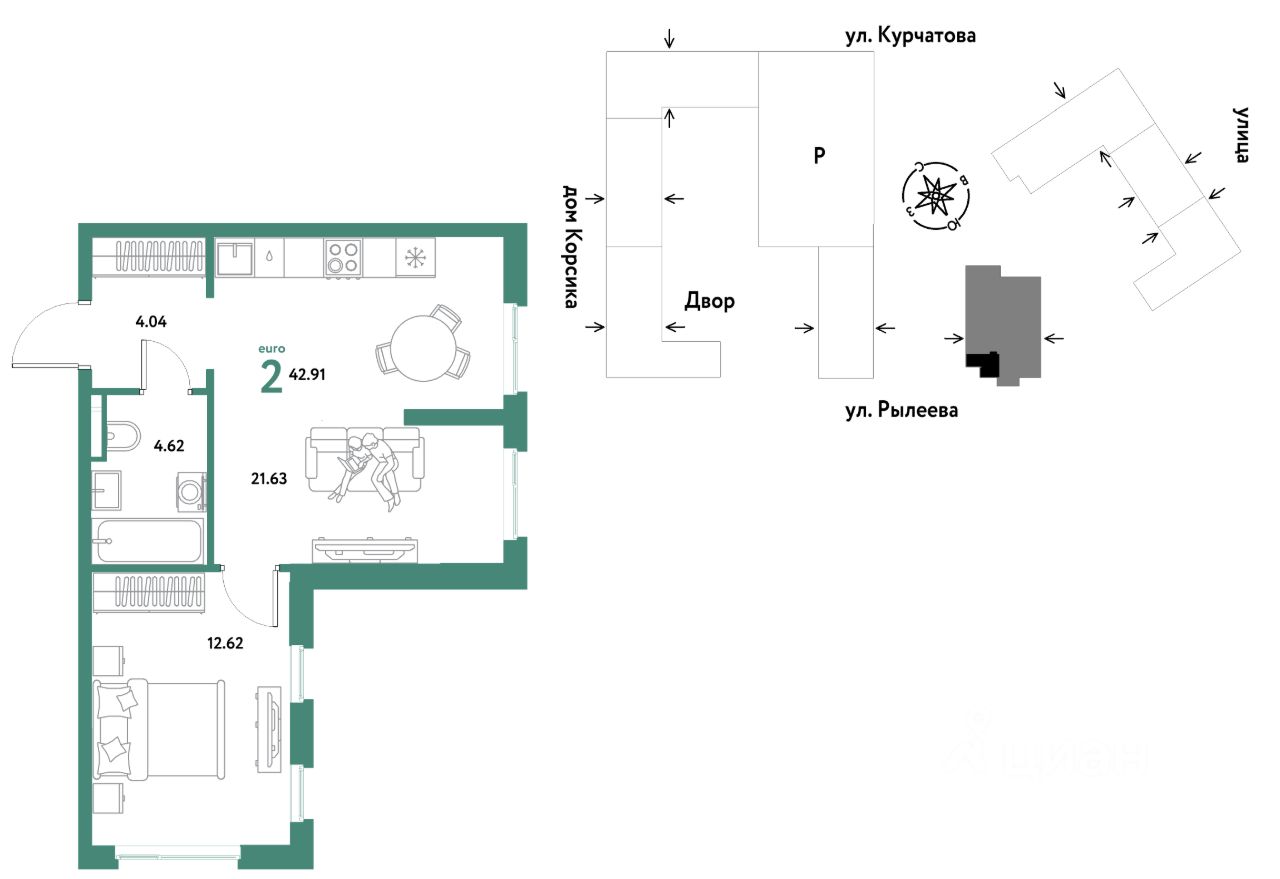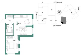 Продается 2комнатная квартира на 9 этаже от застройщика Страна Девелопмент. Площадь квартиры 42,67 кв. м.