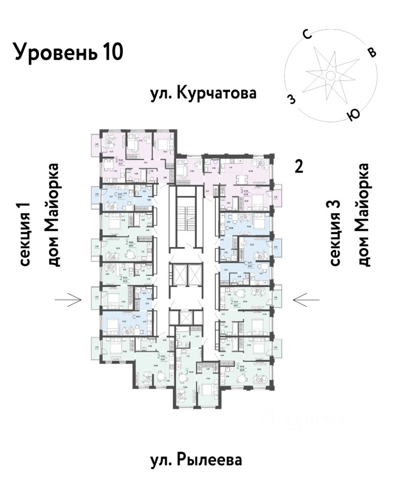 Развитое жилое пространство — закрытые дворы-сады, свои набережная и бульвар, торговая галерея на 1-м этаже, рядом детсады, школы и поликлиника.