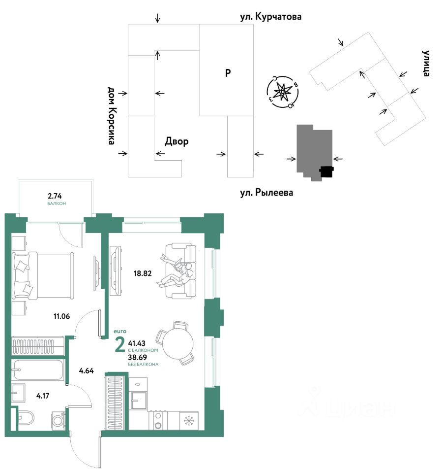 Продается 2комнатная квартира на 10 этаже от застройщика Страна Девелопмент. Площадь квартиры 40,92 кв. м.