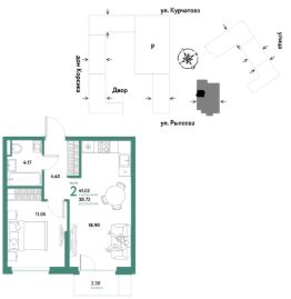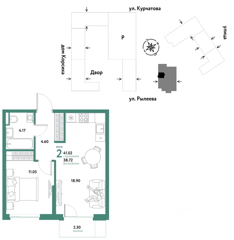 Продается 2комнатная квартира на 10 этаже от застройщика Страна Девелопмент. Площадь квартиры 40,82 кв. м.