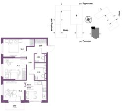 Продается 3комнатная квартира на 10 этаже от застройщика Страна Девелопмент. Площадь квартиры 59,38 кв. м.