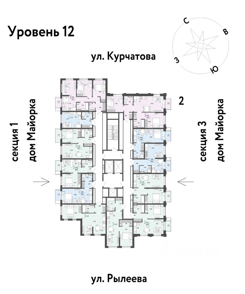 Продается 2комнатная квартира на 12 этаже от застройщика Страна Девелопмент. Площадь квартиры 40,7 кв. м.