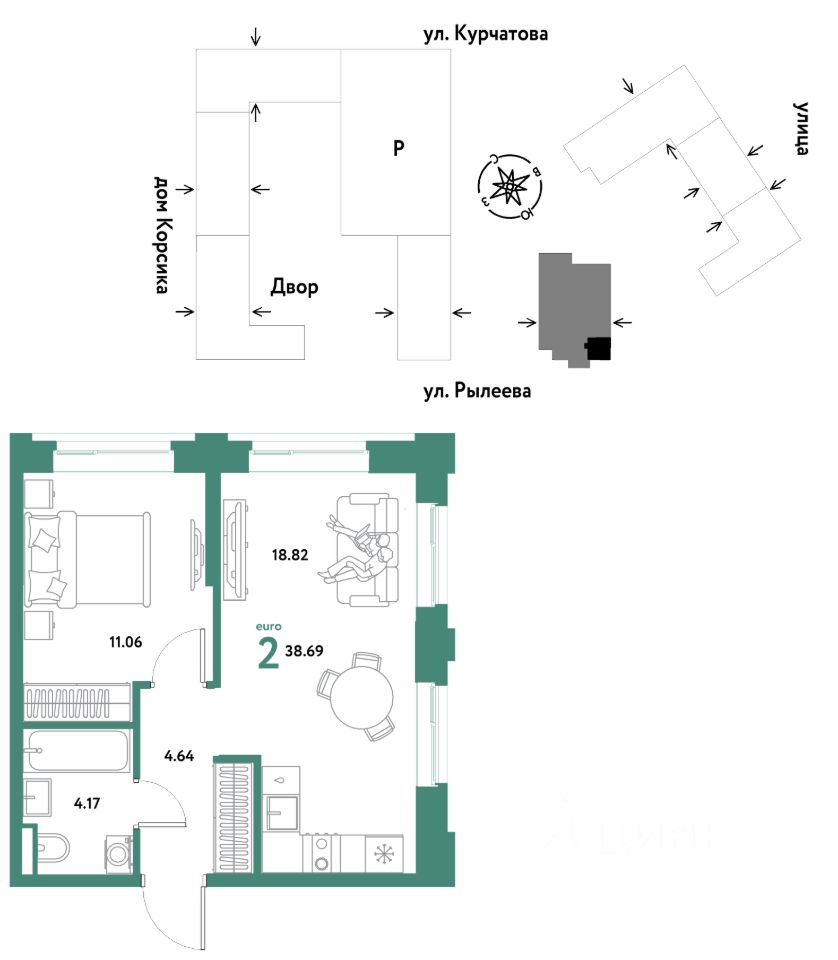 Продается 2комнатная квартира на 13 этаже от застройщика Страна Девелопмент. Площадь квартиры 38,49 кв. м.