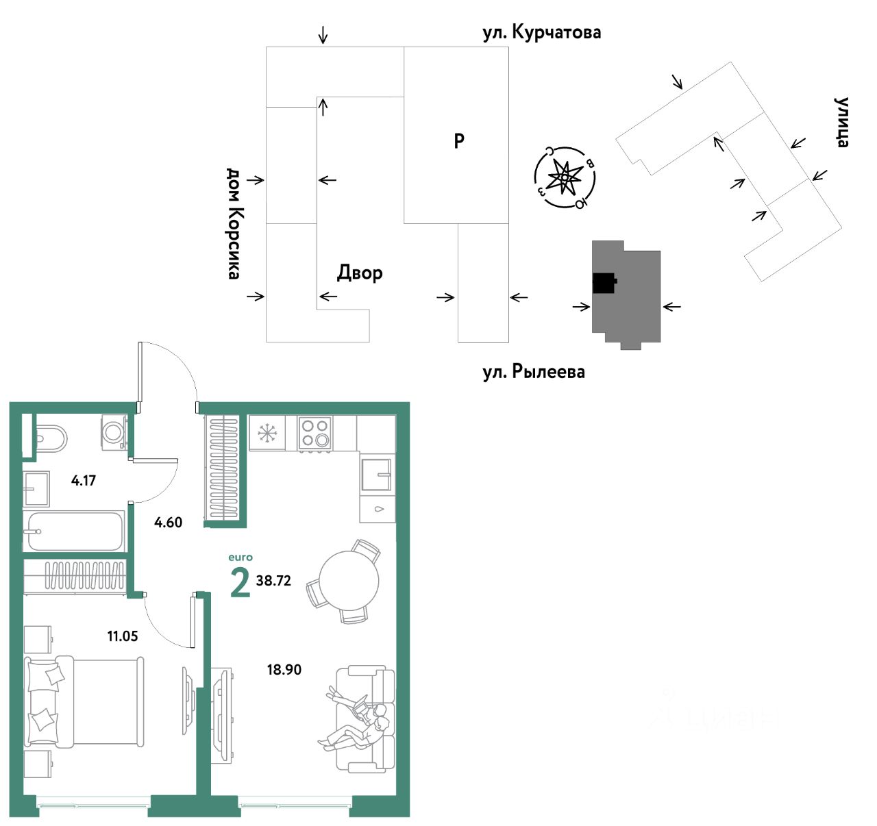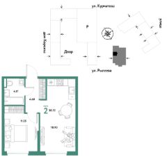 Продается 2комнатная квартира на 13 этаже от застройщика Страна Девелопмент. Площадь квартиры 38,52 кв. м.