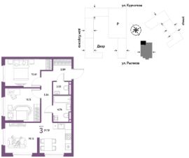 Продается 3комнатная квартира на 20 этаже от застройщика Страна Девелопмент. Площадь квартиры 56,41 кв. м.