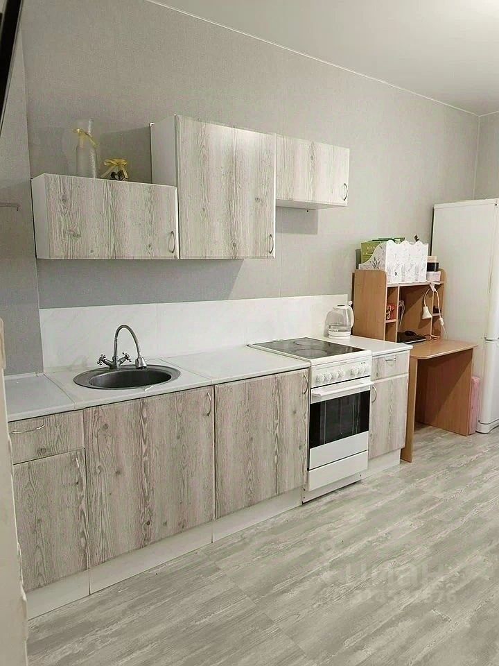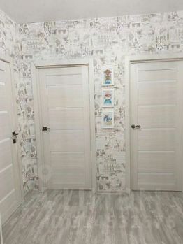 В квартире сделан ремонт в спокойных тонах. Остаются 2 шкафа купе, гарнитур и двухспальная кровать.