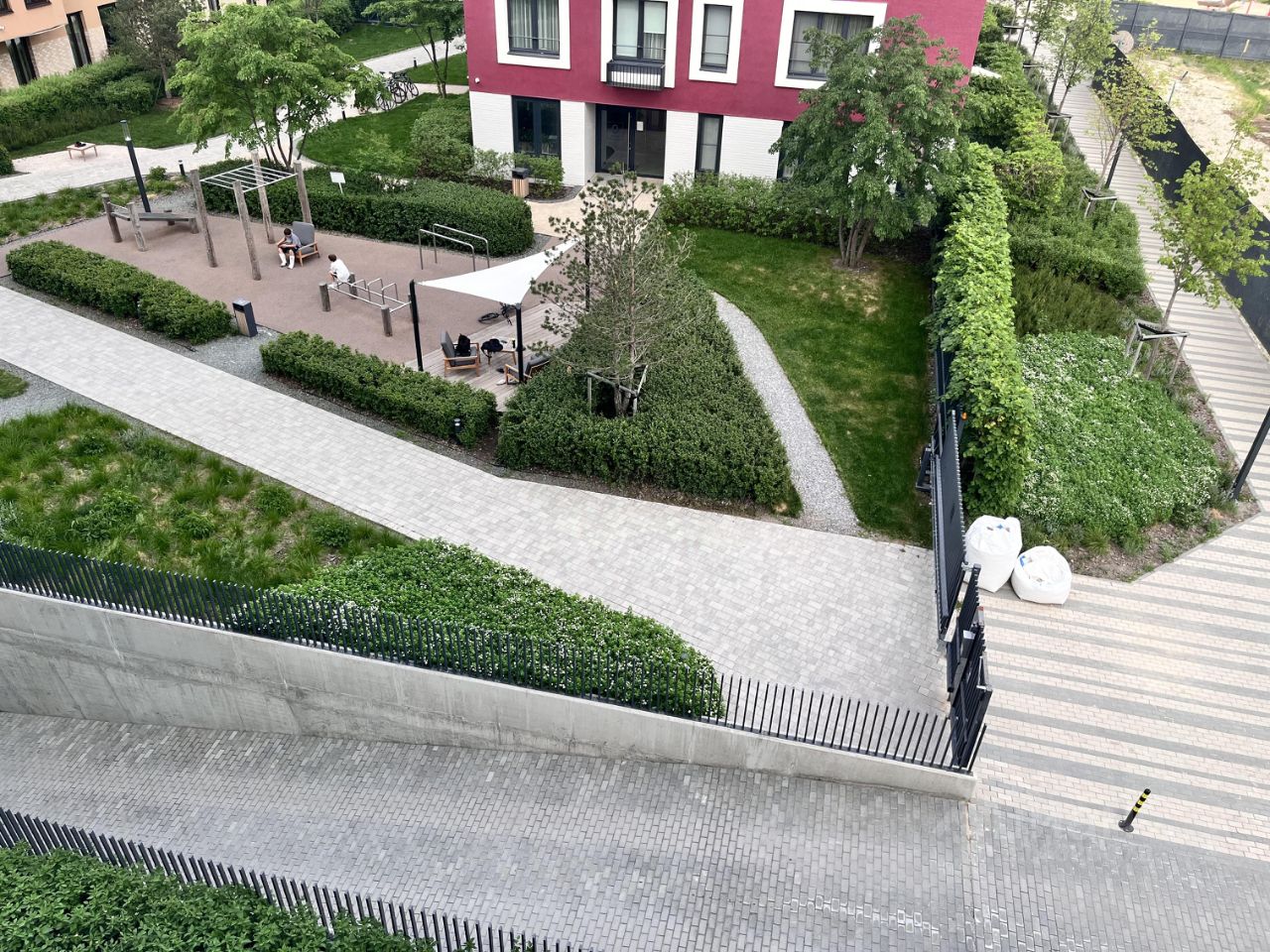 Большой закрытый внутренний двор с круглосуточным видеонаблюдением и охраной, где дети могут спокойно играть на площадке, а вы отдыхать в тени навесов.