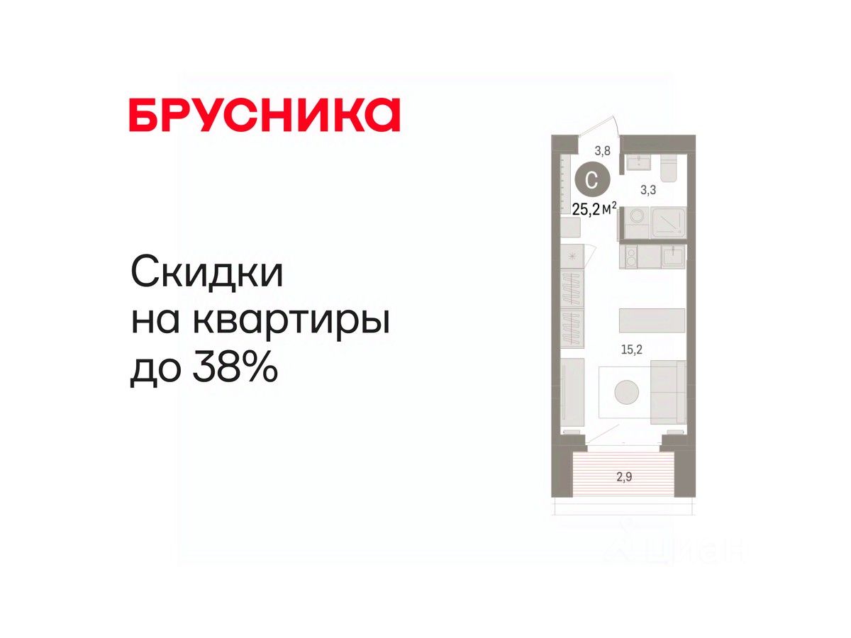 1-комн. студия с предчистовой отделкой в Кварталы "На Минской" на 5 этаже. Общая площадь: 25.16 кв.м., площадь гостиной 15.2 кв.м., из которых 5 кв.м. выделено под кухонную зону. Все окна выходят на одну сторону. В квартире один балкон, один совмещенный санузел. Высота потолков 2.7 м.