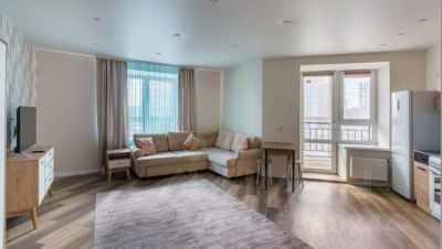 Продается квартира - студия в кирпичном доме в ЖК Ария. 5-й Заречный - современный жилой район города. Рядом расположен парк Дружбы с Республикой Корея, рынок Алебашевский, озеро Алебашево, магазины, кафе и другие необходимые объекты инфраструктуры. До центра города можно добраться за 10 минут. Общая площадь квартиры 41,2 кв.м., интересная планировка: просторная комната, есть гардеробная и балкон с панорамным остеклением. Квартира с современным ремонтом и мебелью. В стоимость квартиры входит: осветительные приборы, кухонный гарнитур, плита, вытяжка, холодильник, стол, стулья (2шт.), диван, тумба под телевизор, шкаф в комнате, система хранения в гардеробной, шкаф в ванной, душевая кабина, зеркало.