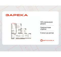 Квартира с кухней-гостиной и тремя спальнями в жилом районе "Зарека". Особенности планировки: гардеробная, предчистовая отделка, мастер-спальня, постирочная, балкон.
