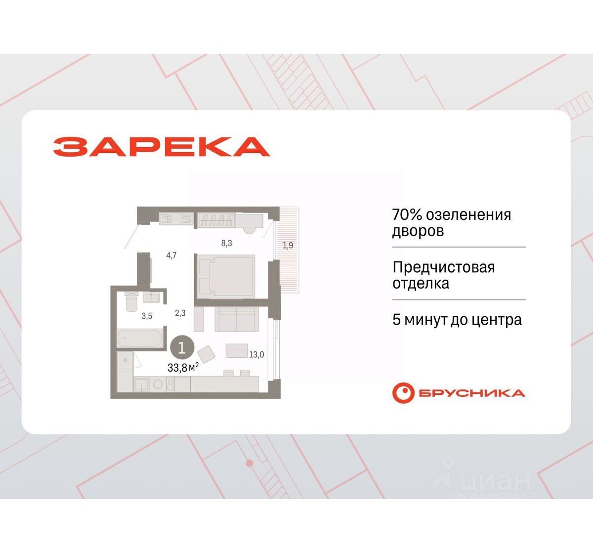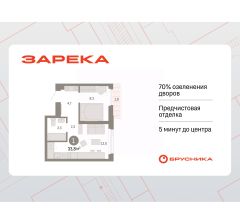 Просторная однокомнатная квартира с предчистовой отделкой в ЖК "Зарека" на 11 этаже. Общая площадь: 33.81 кв.м., жилая: 8.3 кв.м., площадь просторной кухни-гостиной: 13 кв.м. Все окна выходят на одну сторону. В квартире один балкон, один совмещенный санузел. Высота потолков 2.7 м.