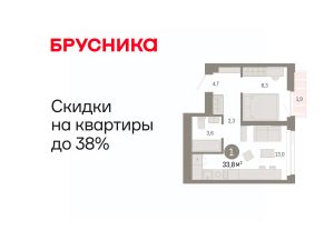 Просторная однокомнатная квартира с предчистовой отделкой в ЖК "Зарека" на 14 этаже. Общая площадь: 33.77 кв.м., жилая: 8.3 кв.м., площадь просторной кухни-гостиной: 13 кв.м. Все окна выходят на одну сторону. В квартире один балкон, один совмещенный санузел. Высота потолков 2.7 м.
