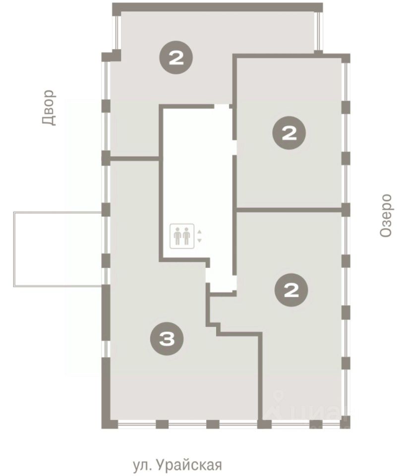 Квартира с кухней-гостиной и двумя спальнями в Доме у озера. Особенности планировки: гардеробная, вид во двор, разнесённые спальни, предчистовая отделка, мастер-спальня, балкон.