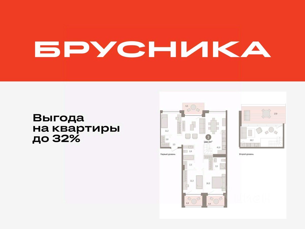 3-комн. квартира от застройщика с предчистовой отделкой в ЖК "Дом у озера" на 4 этаже. Общая площадь: 144.27 кв.м., жилая: 38.5 кв.м., площадь просторной кухни-гостиной: 41.6 кв.м. Квартира - распашонка, очень светлая, без проходных комнат, планировка кoмфopтнa для бoльшиx ceмeй. В квартире два балкона, два совмещенных санузла. Высота потолков 2.7 м.