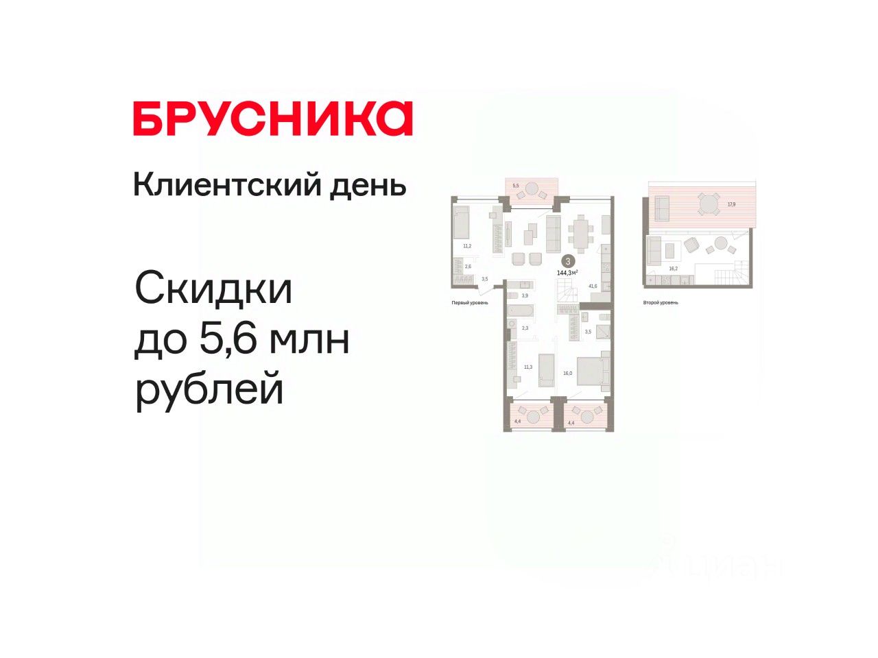 Двухуровневая квартира с кухней-гостиной и тремя спальнями в Доме у озера. Особенности планировки: предчистовая отделка.