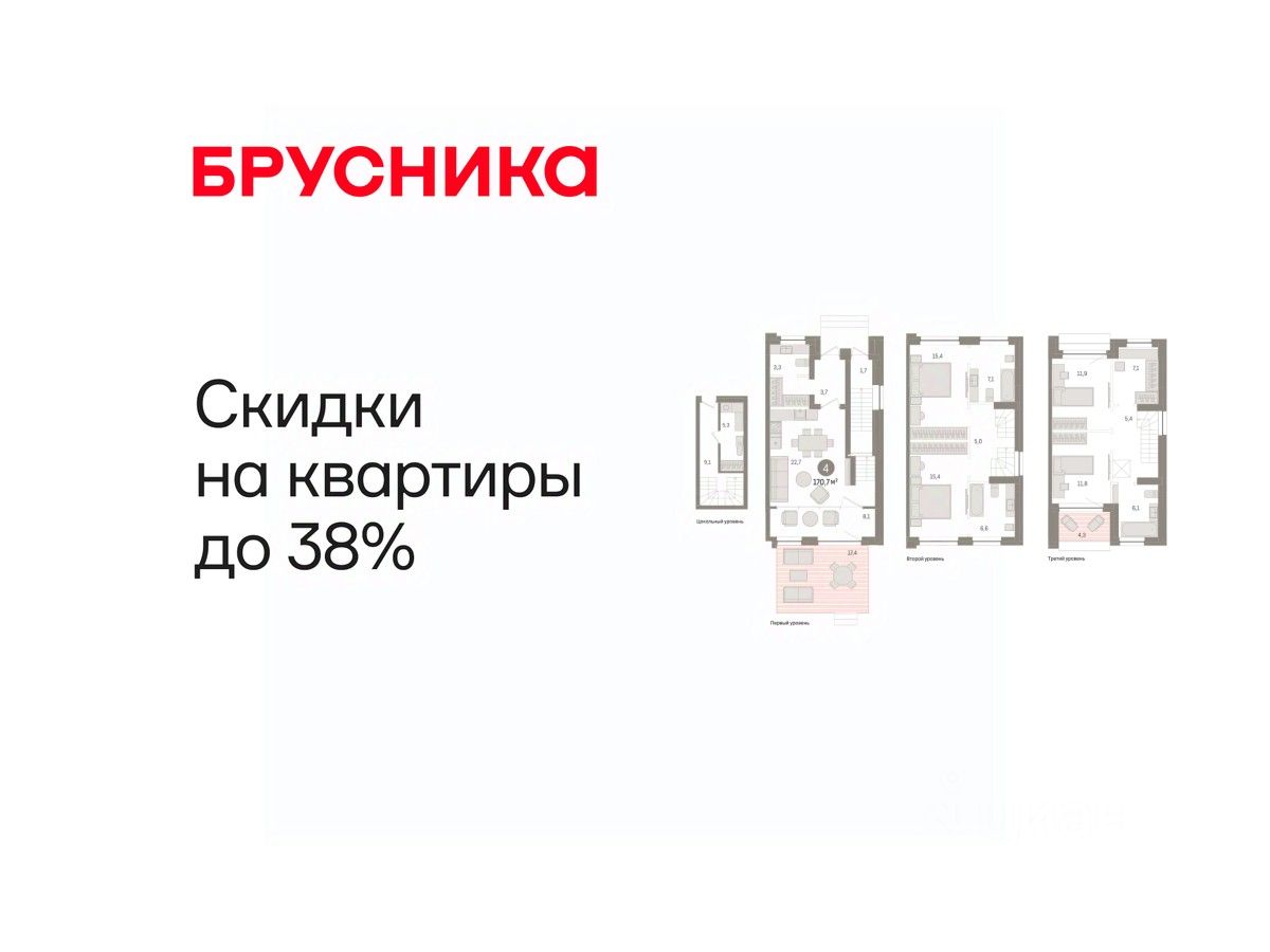 Продается четырехкомнатная квартира с предчистовой отделкой в ЖК "Дом у озера" на 1 этаже. Общая площадь: 170.69 кв.м., жилая: 54.5 кв.м., площадь просторной кухни-гостиной: 22.7 кв.м. Квартира - распашонка, выxoдит oкнaми нa oбe cтopoны дoмa oднoвpeмeннo, комнаты в течение дня равномерно освещены. В квартире один балкон и одна лоджия, три совмещенных и один раздельный санузел. Высота потолков 2.7 м.