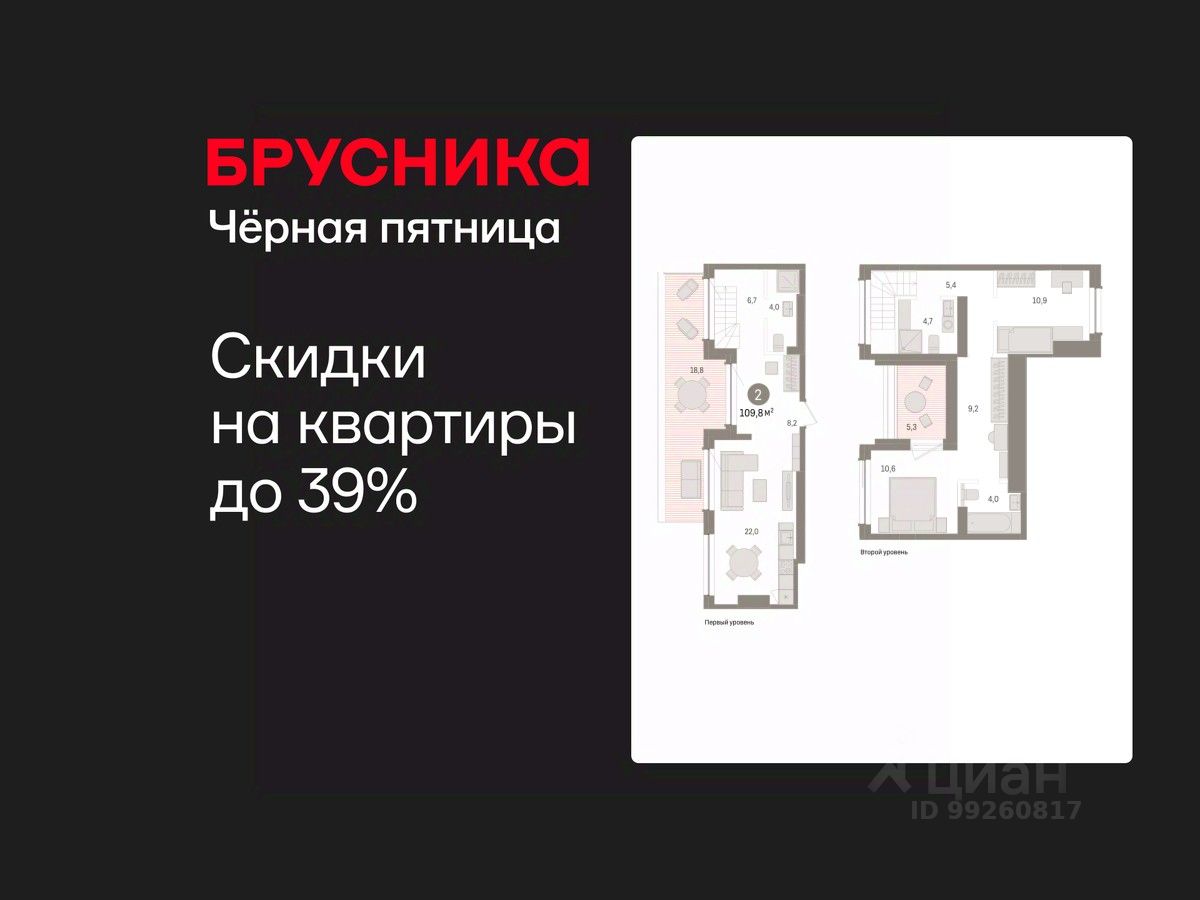 Двухуровневая квартира с кухней-гостиной и двумя спальнями в Доме у озера. Особенности планировки: второй санузел, окно в коридоре, гардеробная, двухуровневая, вид во двор, второй свет, лоджия, разнесённые спальни, предчистовая отделка, мастер-спальня, терраса, терраса на крыше.