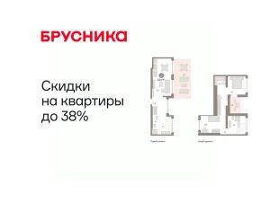 Двухуровневая квартира с кухней-гостиной и двумя спальнями в Доме у озера. Особенности планировки: вид во двор, вид на озеро, второй санузел, двухуровневая, лоджия, мастер-спальня, окно в коридоре, предчистовая отделка, разнесённые спальни, терраса, терраса на крыше.