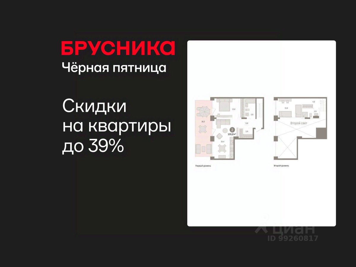 Двухуровневая квартира с кухней-гостиной и двумя спальнями в Доме у озера. Особенности планировки: гардеробная, двухуровневая, вид во двор, второй свет, разнесённые спальни, предчистовая отделка, мастер-спальня, терраса на крыше.