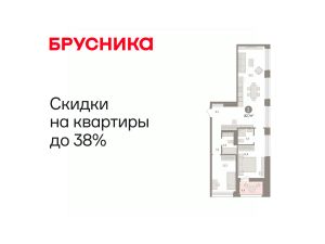 Квартира с кухней-гостиной и двумя спальнями в Доме у озера. Особенности планировки: предчистовая отделка.
