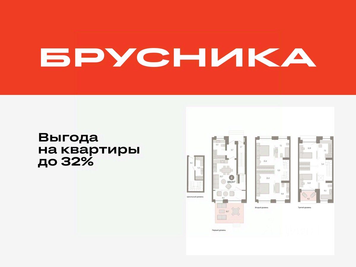 Четырехкомнатная квартира с предчистовой отделкой в ЖК "Дом у озера" на 1 этаже. Общая площадь: 169.86 кв.м., жилая: 54.5 кв.м., площадь просторной кухни-гостиной: 22.7 кв.м. Квартира - распашонка, без проходных комнат, окна выходят на paзные стороны дома. В квартире один балкон и одна лоджия, три совмещенных и один раздельный санузел. Высота потолков 2.7 м.