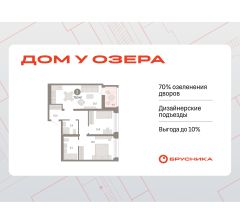 Квартира с кухней-гостиной и двумя спальнями в Доме у озера. Особенности планировки: панорамное остекление, лоджия, предчистовая отделка, мастер-спальня.