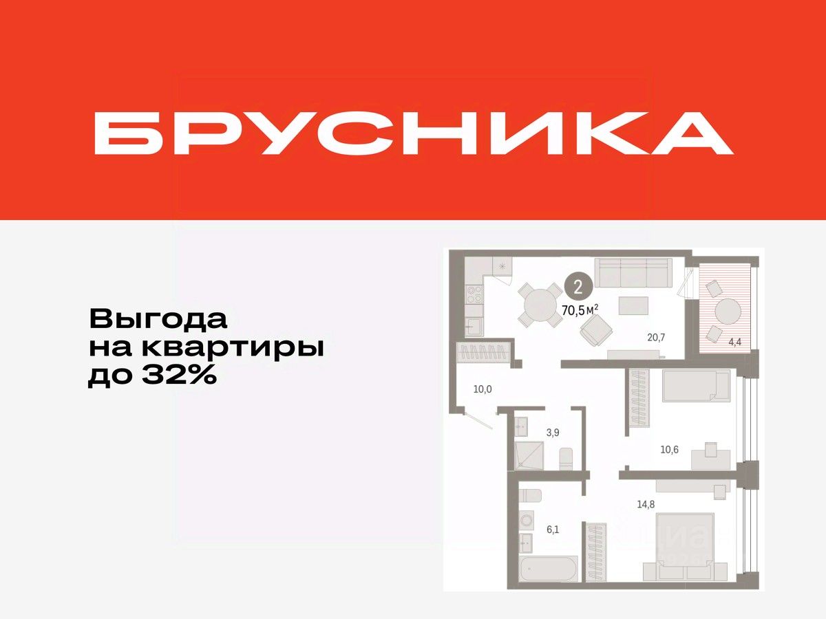 Просторная 2-комн. квартира с предчистовой отделкой в ЖК "Дом у озера" на 7 этаже. Общая площадь: 70.49 кв.м., жилая: 25.4 кв.м., площадь просторной кухни-гостиной: 20.7 кв.м. Комнаты изолированные, все окна выходят на одну сторону. В квартире одна лоджия, два совмещенных санузла. Высота потолков 2.7 м.