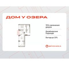 Квартира с кухней-гостиной и двумя спальнями в Доме у озера. Особенности планировки: вид во двор, разнесённые спальни, предчистовая отделка, балкон.