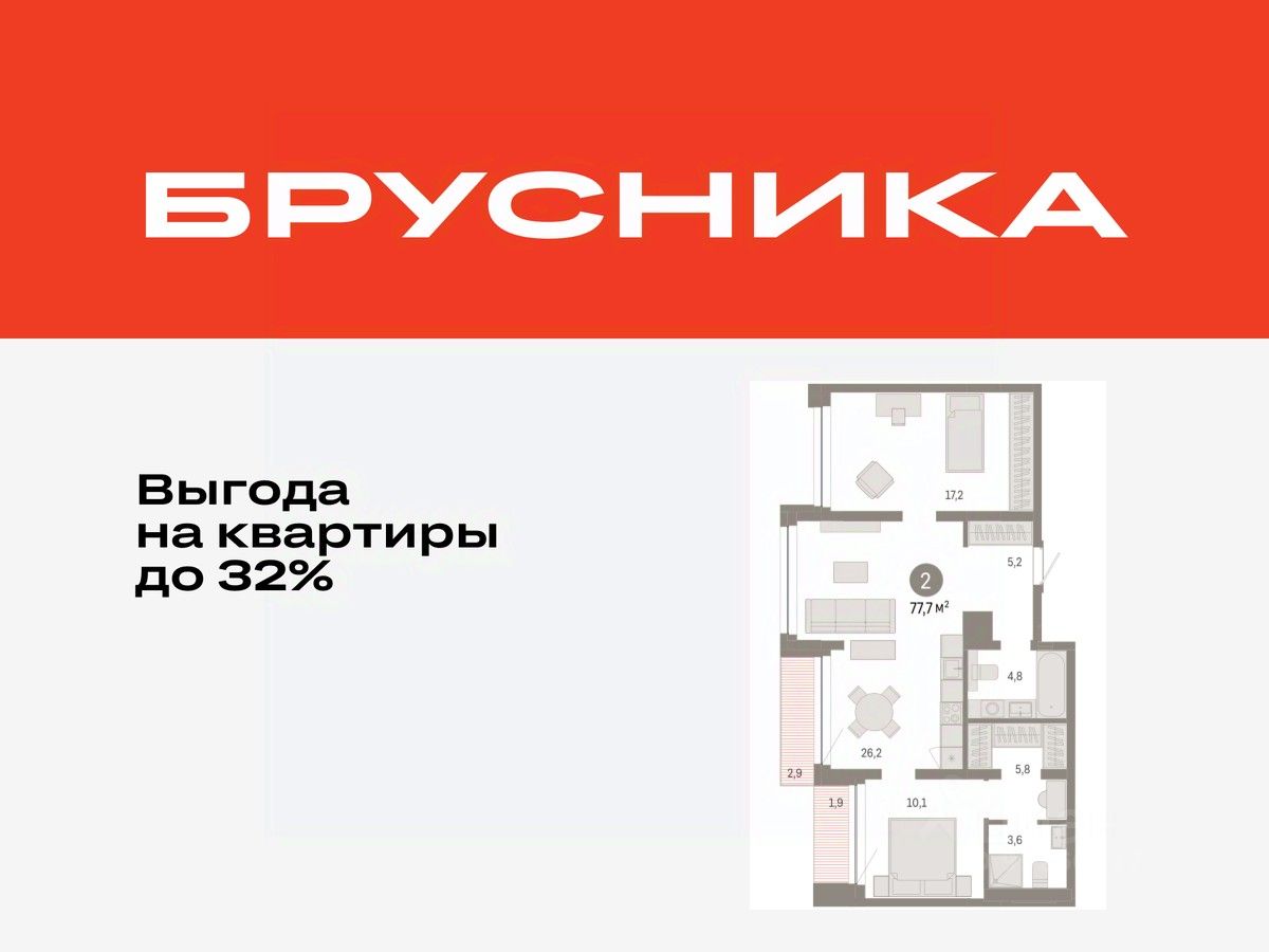 2-комн. квартира с предчистовой отделкой в ЖК "Дом у озера" на 6 этаже. Общая площадь: 77.71 кв.м., жилая: 27.3 кв.м., площадь просторной кухни-гостиной: 26.2 кв.м. Комнаты изолированные, все окна выходят на одну сторону. В квартире две лоджии, два совмещенных санузла. Высота потолков 2.7 м.