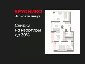 Квартира с кухней-гостиной и двумя спальнями в Доме у озера. Особенности планировки: гардеробная, окна в пол, вид во двор, разнесённые спальни, предчистовая отделка, мастер-спальня, балкон.