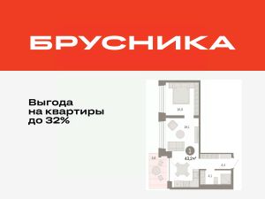 Квартира с кухней-гостиной и одной спальней в Доме у озера. Особенности планировки: вид во двор, панорамное остекление, предчистовая отделка, балкон.