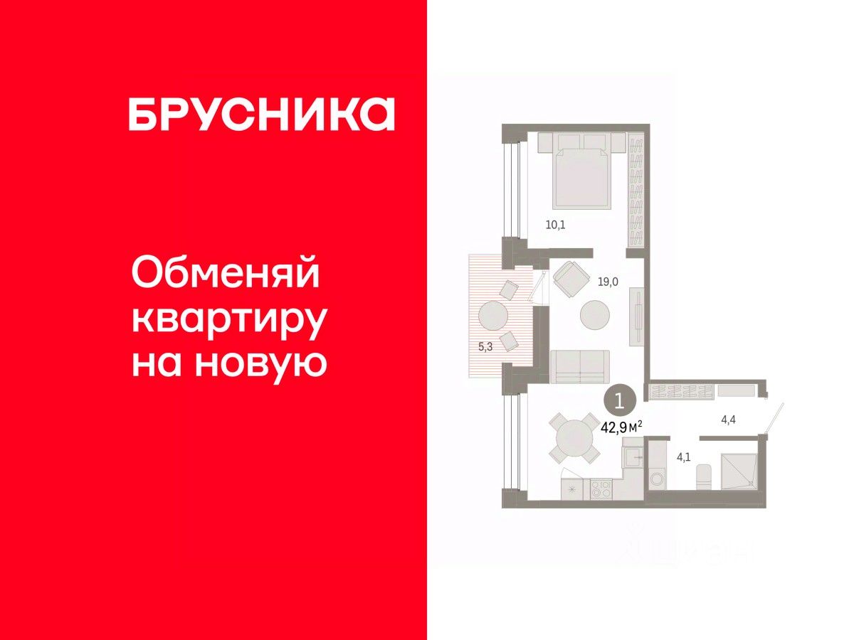 1-комн. квартира от застройщика с предчистовой отделкой в ЖК "Дом у озера" на 7 этаже. Общая площадь: 42.87 кв.м., жилая: 10.1 кв.м., площадь просторной кухни-гостиной: 19 кв.м. Все окна выходят на одну сторону. В квартире одна лоджия, один совмещенный санузел. Высота потолков 2.7 м.