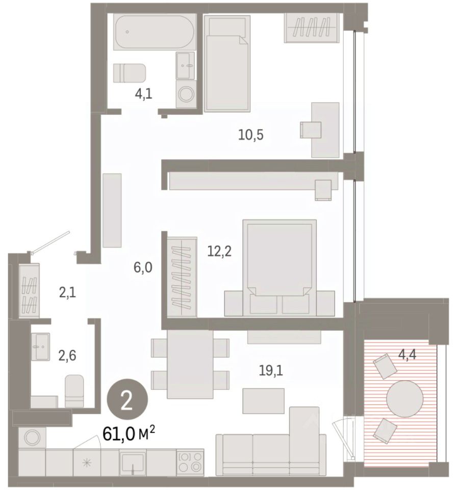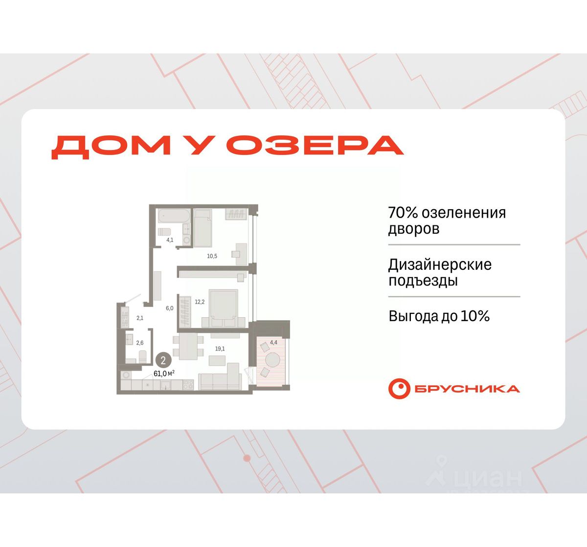 Продается 2-комн. квартира от застройщика с предчистовой отделкой в ЖК "Дом у озера" на 7 этаже. Общая площадь: 61.03 кв.м., жилая: 22.7 кв.м., площадь просторной кухни-гостиной: 19.1 кв.м. Комнаты изолированные, все окна выходят на одну сторону. В квартире один балкон, один совмещенный и один раздельный санузел. Высота потолков 2.7 м.