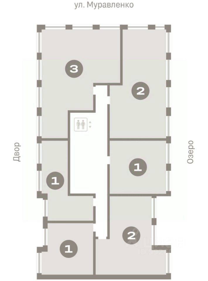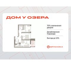 Квартира с кухней-гостиной и двумя спальнями в Доме у озера. Особенности планировки: второй санузел, панорамное остекление, лоджия, предчистовая отделка.
