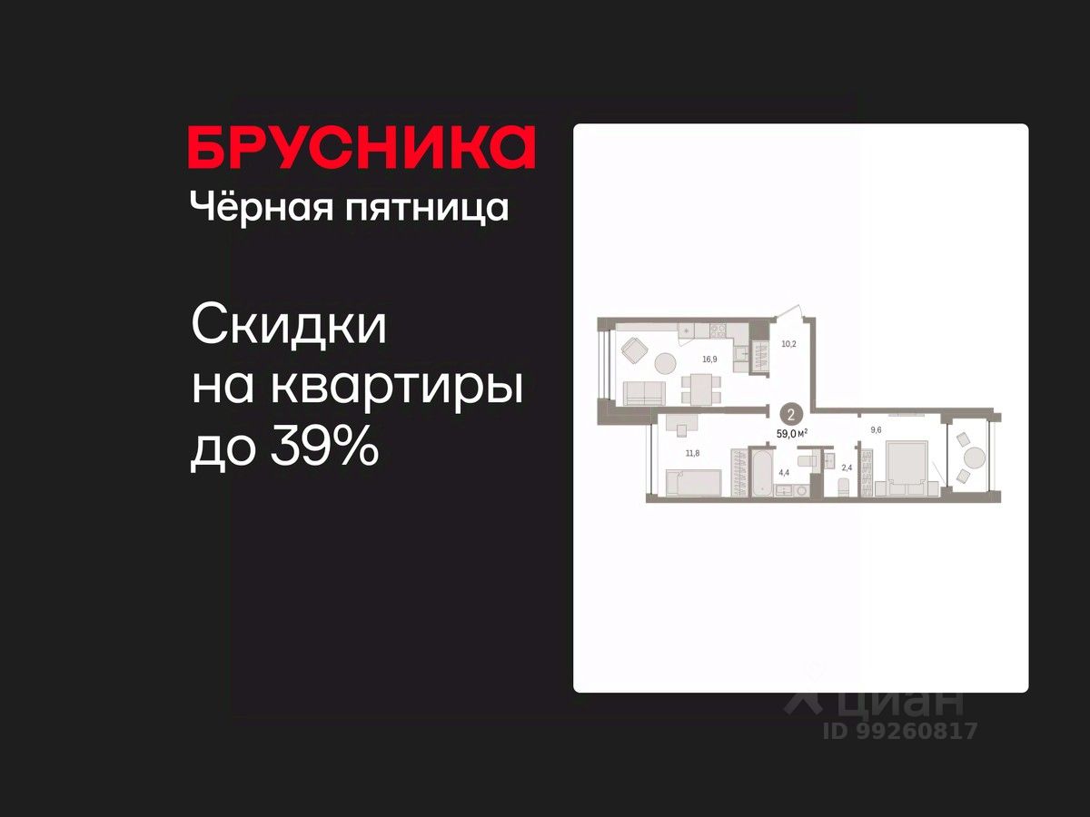 Двухкомнатная квартира с предчистовой отделкой в ЖК "Дом у озера" на 6 этаже. Общая площадь: 58.95 кв.м., жилая: 21.4 кв.м., площадь просторной кухни-гостиной: 16.9 кв.м. Квартира - распашонка, без проходных комнат, окна выходят на paзные стороны дома. В квартире одна лоджия, один совмещенный и один раздельный санузел. Высота потолков 2.7 м.