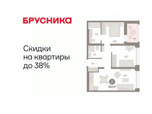 2-комн. квартира от застройщика с предчистовой отделкой в ЖК "Дом у озера" на 7 этаже. Общая площадь: 63.12 кв.м., жилая: 21.2 кв.м., площадь просторной кухни-гостиной: 20.7 кв.м. Комнаты изолированные, все окна выходят на одну сторону. В квартире одна лоджия, два совмещенных санузла. Высота потолков 2.7 м.