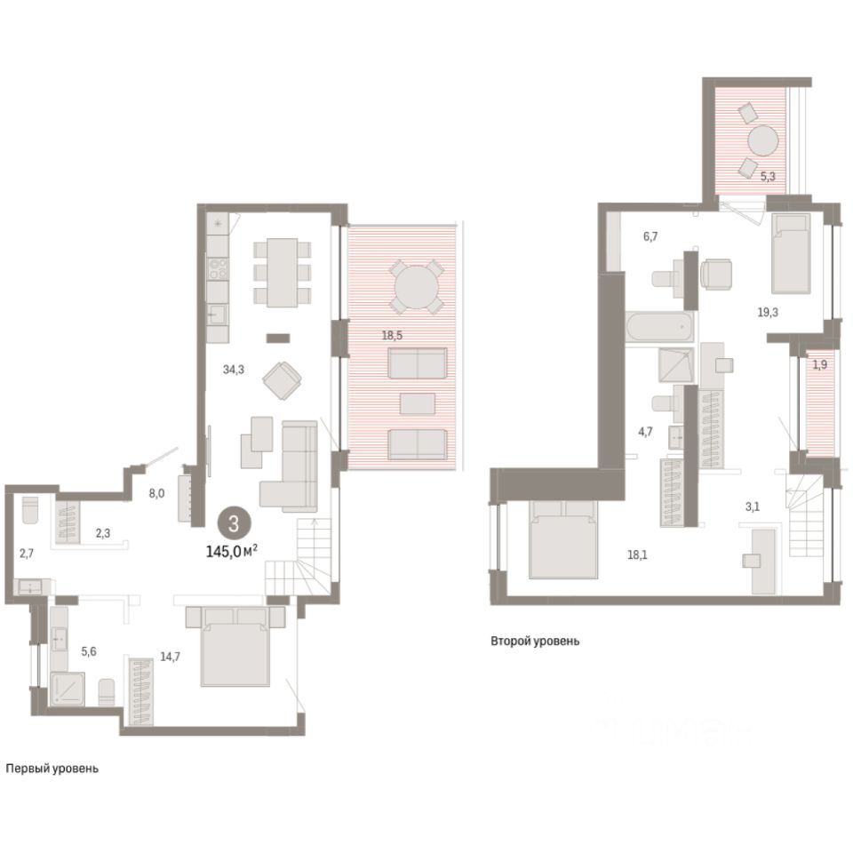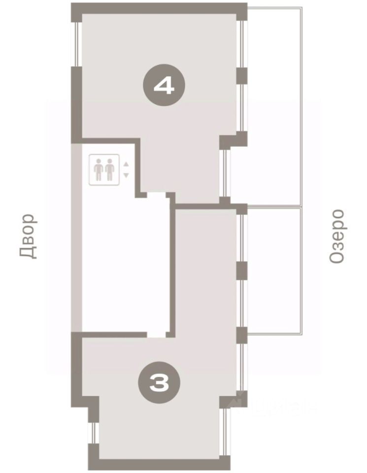 Двухуровневая квартира с кухней-гостиной и тремя спальнями в Доме у озера. Особенности планировки: гардеробная, окно в санузле, двухуровневая, вид во двор, панорамное остекление, вид на озеро, лоджия, разнесённые спальни, предчистовая отделка, мастер-спальня, терраса, терраса на крыше.
