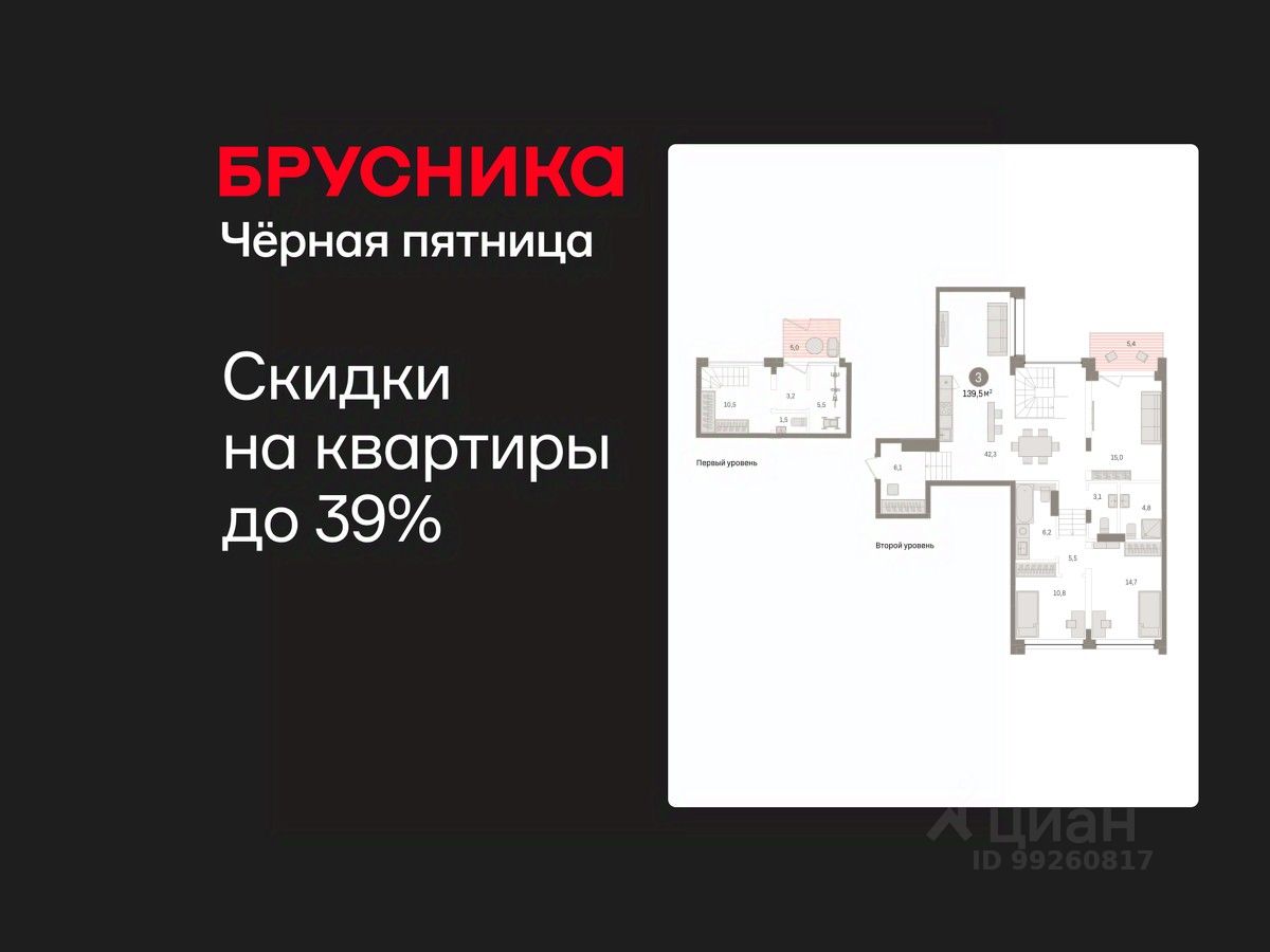 Двухуровневая квартира с кухней-гостиной и тремя спальнями в Доме у озера. Особенности планировки: гардеробная, окна в пол, двухуровневая, вид во двор, отдельный вход, разнесённые спальни, предчистовая отделка, мастер-спальня, балкон, терраса на крыше.
