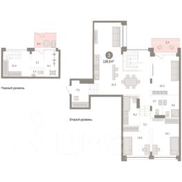 Двухуровневая квартира с кухней-гостиной и тремя спальнями в Доме у озера. Особенности планировки: балкон, вид во двор, гардеробная, двухуровневая, мастер-спальня, окна в пол, отдельный вход, потолки 3 м и выше, предчистовая отделка, разнесённые спальни, терраса на крыше.