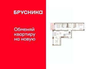Квартира с кухней-гостиной и двумя спальнями в Доме у озера. Особенности планировки: балкон, вид во двор, гардеробная, мастер-спальня, предчистовая отделка, разнесённые спальни.