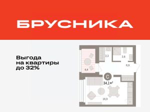 1-комн. студия от застройщика с предчистовой отделкой в ЖК "Дом у озера" на 7 этаже. Общая площадь: 34.06 кв.м., площадь гостиной 16.9 кв.м., из которых 5 кв.м. выделено под кухонную зону. Все окна выходят на одну сторону. В квартире одна лоджия, один совмещенный санузел. Высота потолков 2.7 м.