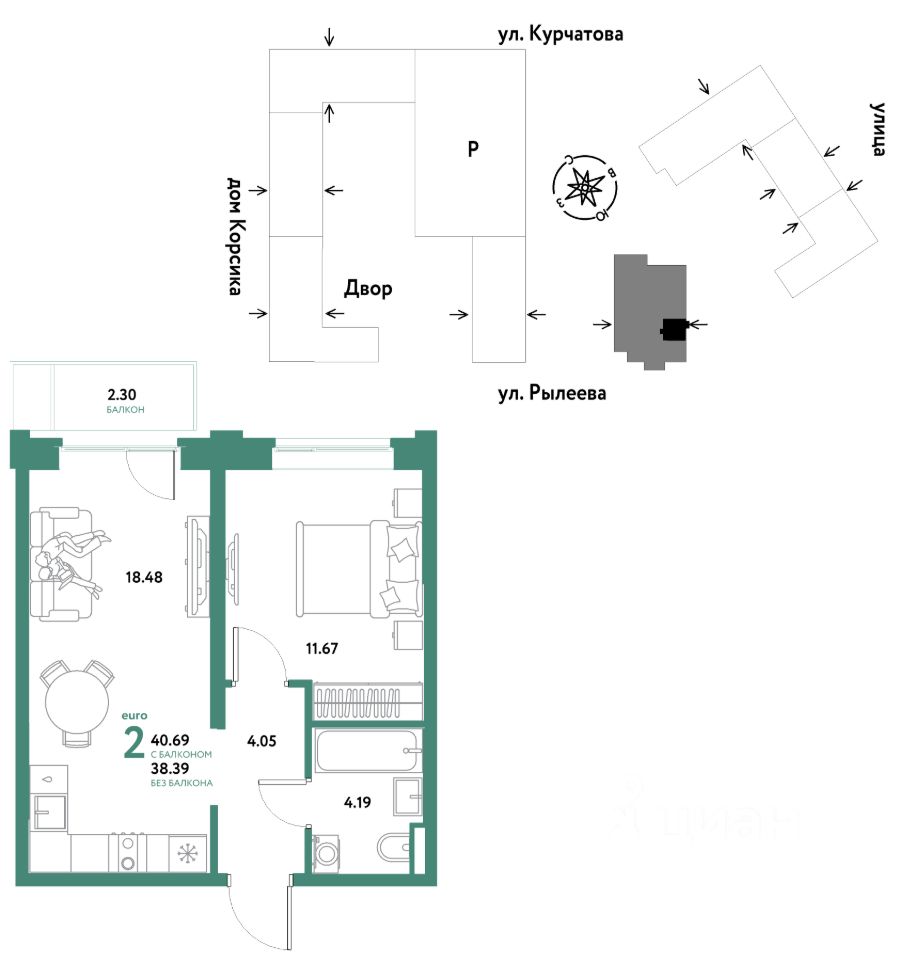Продается 2комнатная квартира на 3 этаже от застройщика Страна Девелопмент. Площадь квартиры 40,49 кв. м.