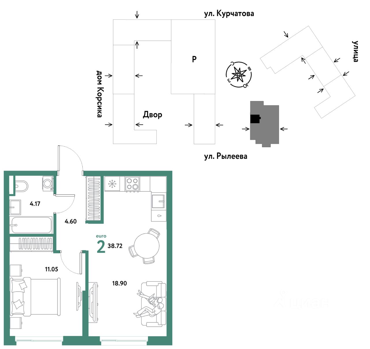 Продается 2комнатная квартира на 16 этаже от застройщика Страна Девелопмент. Площадь квартиры 38,52 кв. м.