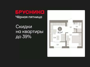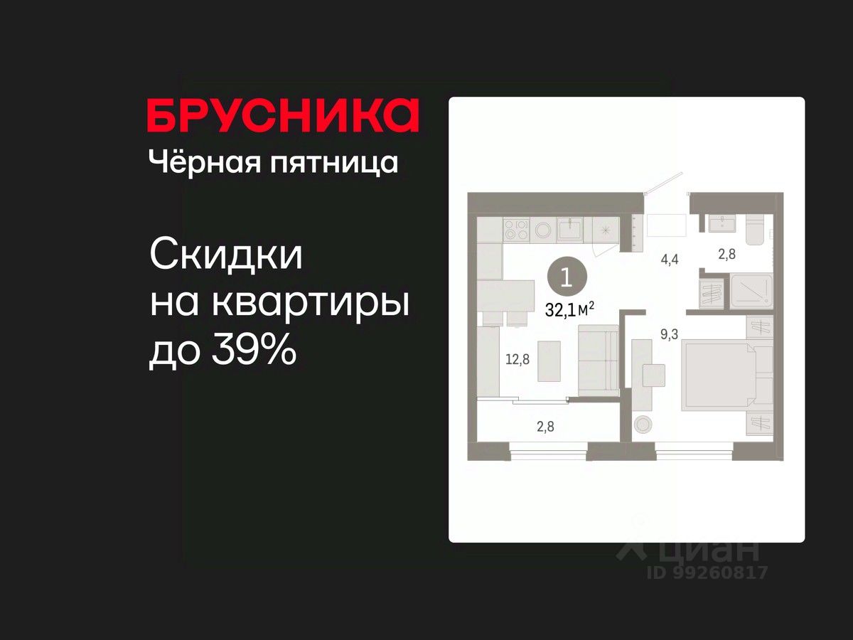 Квартира с кухней-гостиной и одной спальней в Октябрьском на Туре. Особенности планировки: вид во двор, тёплая лоджия, предчистовая отделка.